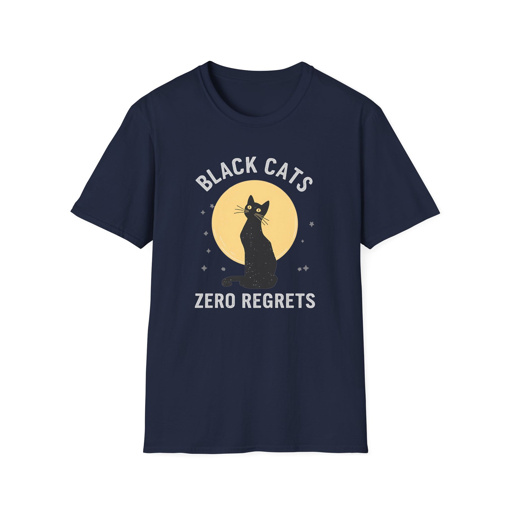 Show your love for black cats with this Black Cats Zero Regrets t-shirt. Featuring a sleek cat silhouette against a full moon, this comfy tee is perfect for cat lovers, or anyone who knows black cats bring nothing but good vibes. Makes a great gift for friends, family, or proud cat owners.