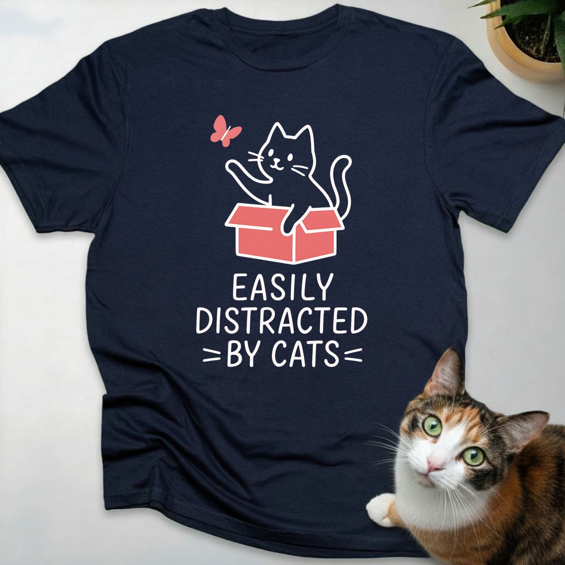 Because who can resist a cat in a box? This playful tee features a curious kitty reaching for a butterfly, perfectly capturing the everyday distractions of cat lovers. Fun, minimalistic, and easy to wear, it makes a purr-fect gift for anyone who can’t stay focused when there’s a cat around.