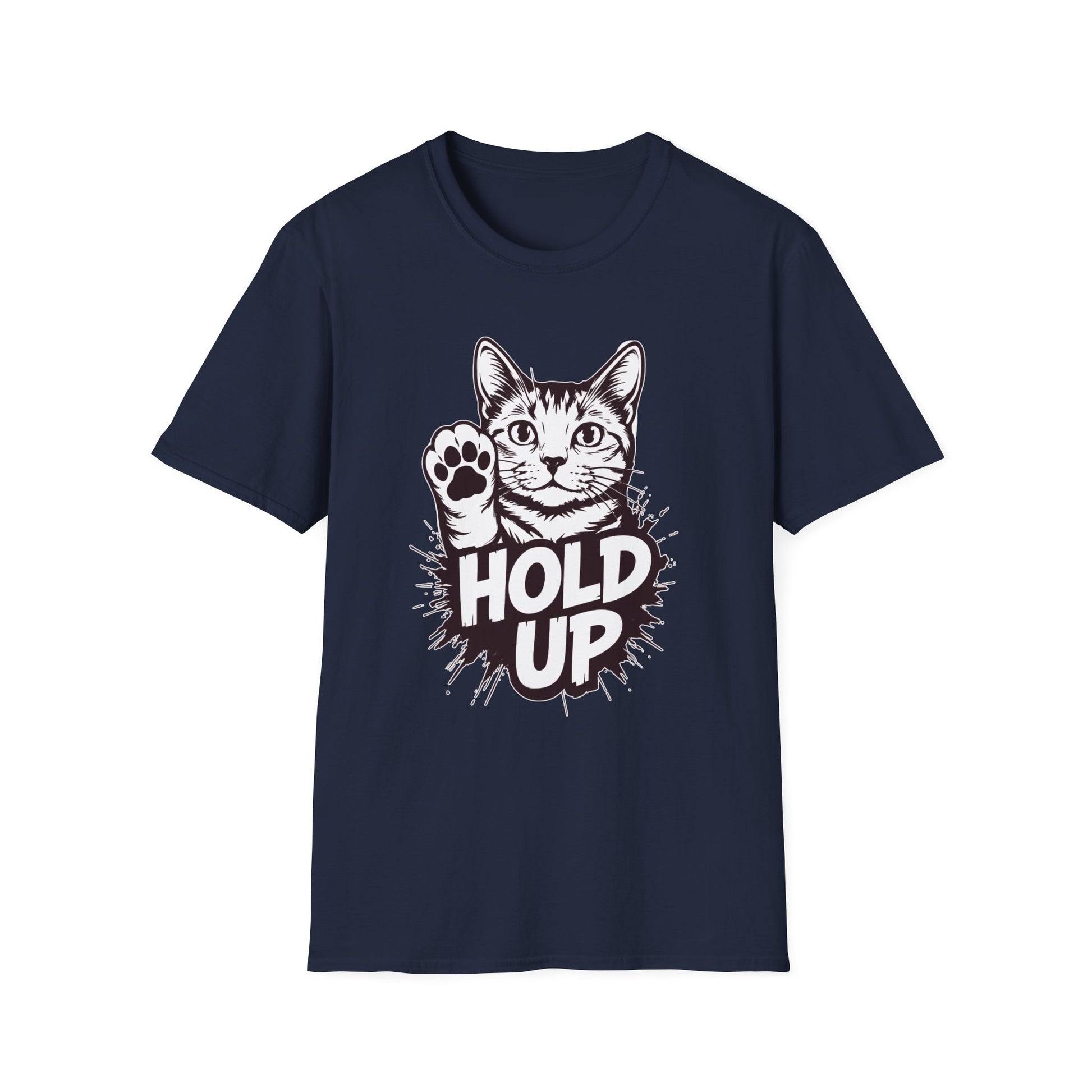 Make a statement with this funny Hold Up Cat t-shirt. Featuring a cool cat raising its paw, this comfy tee is perfect for cat lovers who enjoy playful and quirky designs. A great gift for birthdays, holidays, or anyone who loves cats with attitude.